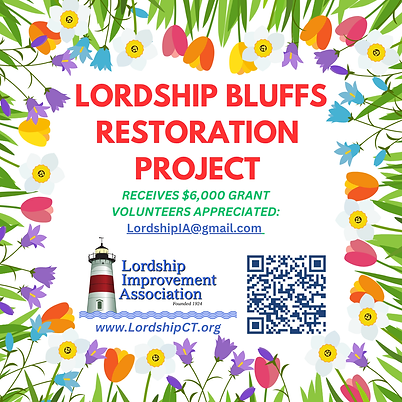 (June 23, 2025) - Great news! The Lordship Improvement Association (LIA) has been awarded a $6,000 grant as a kickstart to its multi-year Lordship Bluffs Restoration Project, a collaboration with experts featuring planting native trees and shrubs, managing invasive species, and enhancing pollinator and wildlife habitats on Stratford’s Lordship Bluffs.
